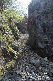 一人で駆け下るには何の問題もない路だが、全く落石を起こさないで下れる技量を持っている人はいないだろう。
