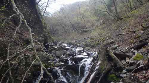 小滝は幾つかあるが、見るための滝はこれ一つで、蛭ヶ岳下の小草平直下へ、もしくは地蔵岳の近傍に抜ける沢で、新緑に埋まる今の季節に谷間を歩くのは気分をリフレッシュさせるのは格好な沢だと思う。