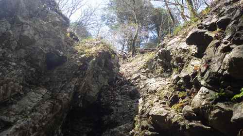道は急傾斜地に付けられた登山道だが、石を階段状に組まれている場所もあり、昭和30年の国体用時に整備が為され、今は環境省所管の東海自然歩道の一部として関係者が赤面しないように整備がされている良い道である。