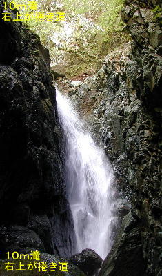 その井戸の先の瀞の左側から10m程が勢いよく落下する。