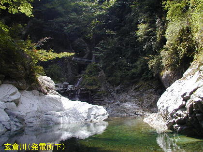 発電所を過ぎて小さな隧道を通り越したすぐ先で玄倉林道の下を本流にゴルジュ状にそそぎ込む