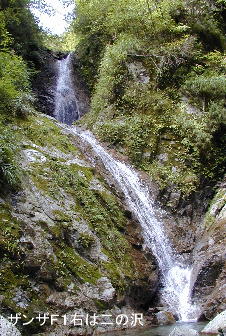 右の「二の沢」F1もなかなか悪相に見えるが、捲き道が滝壺からは他に見通せないから、もっとも容易に見えるF1の左側の流れ沿いに登る。