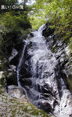 左に切り立った涸ゴルジュの「四の沢」を見送って本流を進んでいくと黒々とした10m滝になる。