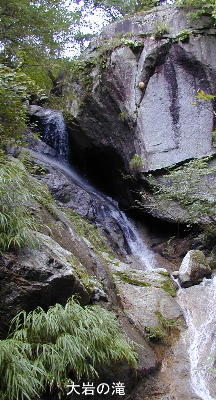 次に更に巨大な大岩が右側にあって、上部がのっぺりと見える15m程の滝となる。