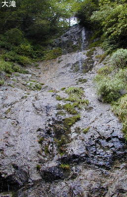 3mと4m程の簡単な小滝を越し、ナメを過ぎると水量は少なくなるが、その先に二段の大滝が聳える。