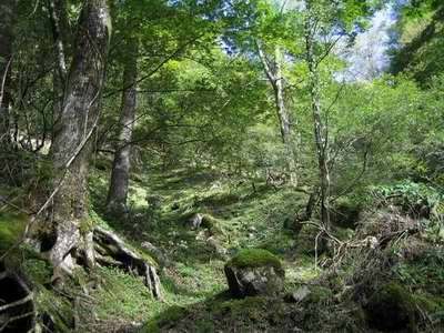 二俣台地のブナ林(右に行けば下駄小屋への乗越かな)