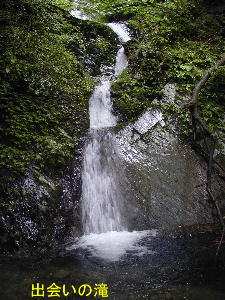 本流の小さな小滝を越すと、左岸から直角に水量比1:1の3〜5mのフラットな一枚岩の滝が合流する。
