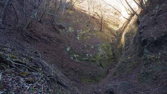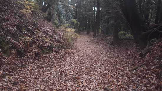 しかしそれは記憶の道であり、枯葉のつながりが道に似せて見せてはいても、実際には踏幅も無ければ路肩も無し。