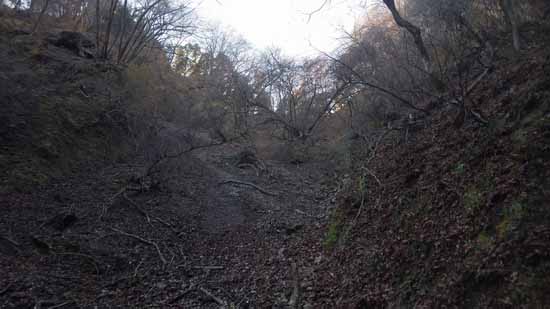 知っているのは林道終点から先の小瘤を越えて向こう側に降り、直進方向の境川ではなく、右手方向に分かれる小沢に沿って進み、その小沢が左右のどちらにも直ぐ奥に見える砂防堤を見つつ、中央を尾根に乗り、宮ヶ瀬尾根の最低鞍部に出るルートだ。