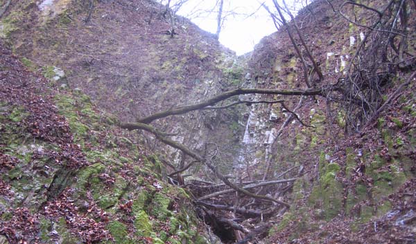 前か、前々回かには、この滝を出来るだけ直に登ろうとして、3mほど上がったところでホールドにした柱状が「スポッ」と抜けて落ちた。