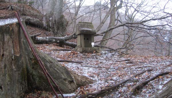 そうなってから確認できた宮ヶ瀬尾根を降るのも面倒なので、正しく石祠分岐まで行き、土山峠方向、辺室山への登山道を歩いて途中(登山道の方向が変わる地点の登山標識から)からの小尾根で境川林道終点方向に降りていった。