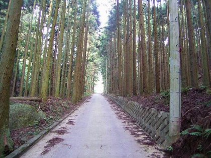 大平石切場下の杉並木 杉の美林だ