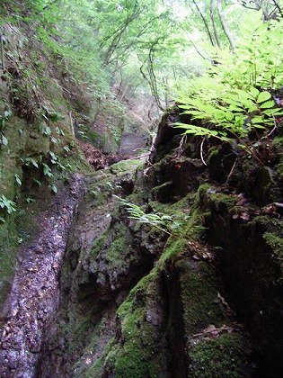ズルズリと滑り落ちるように下るこんな道が一番苦手だ。