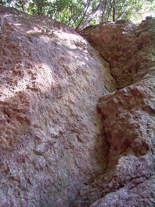 左に出っ張った岩を指が引っかかる場所をまさぐって登る。