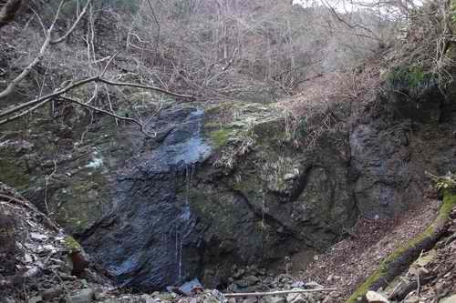 林道から入って三つの砂防堤を越えた先に出てくる崖のような滝