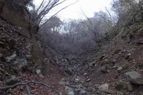 林道から山稜までの標高差はおおよそ300m、小さく短い沢で、10年ほど前、砂防工事の終わった直後に一度歩いたことがある。