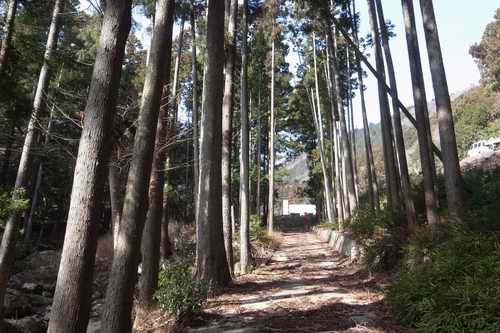 付け替え道から更に下って使われなくなった杉の中の旧道に