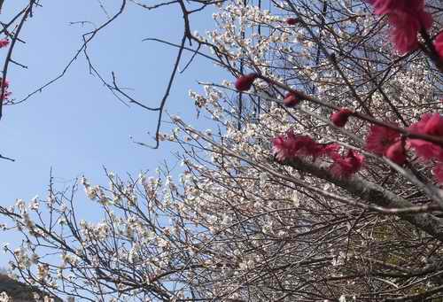 堤の工事現場にあった梅の木は撤去されてしまったが、里の梅は盛りとばかりに花弁を広げている。