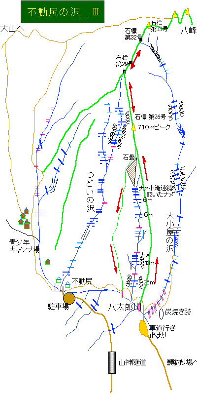 先々週《集いの沢》からの自転車を担いでの不動尻〜煤ヶ谷での帰り道、谷太郎川の左岸に入ってくる沢を見つけたので、早速出かけてきた。