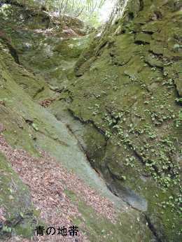 再び両岸が狭まり、辺りは水苔、水のりに覆われ【青のスラブ地帯_適当な命名】視界全体が青みにつつみ覆われた幻想的な荒い岩肌のスラブ帯となる。