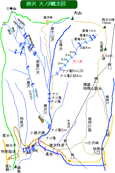 不動尻の沢〜大ノ沢(唐沢川)〜大山