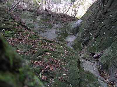 水は無くなり 苔の這えるスラブ岩を登る(少々きつい滑り台だ)