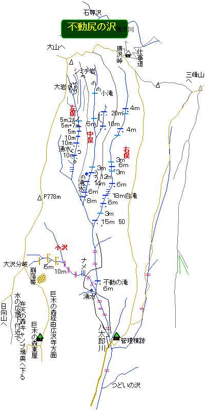 丹沢の沢歩き 七沢不動尻 白滝のある沢から一つ奥に位置する沢(名知らず;仮称;不動尻中俣T)を歩く マシラ