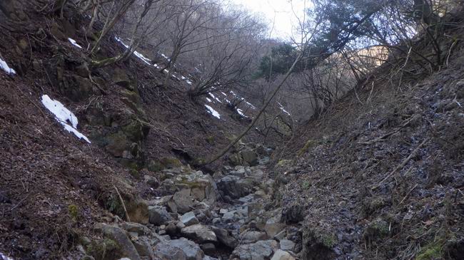 ガラガラとした石が転がる彫りの浅い沢。