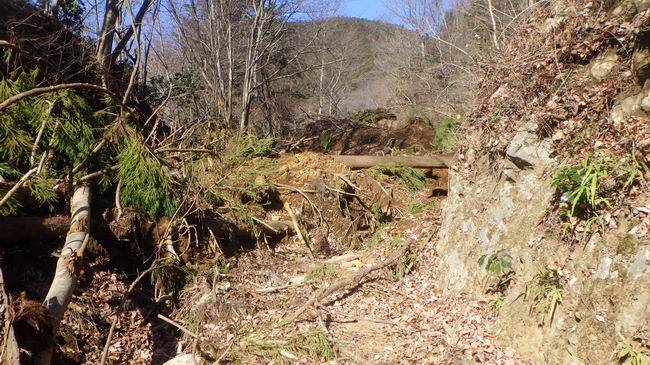 唐沢林道は小唐沢橋付近が大量の倒木と土砂で50m以上も覆われていて障害物競走のようにして通り抜けた。