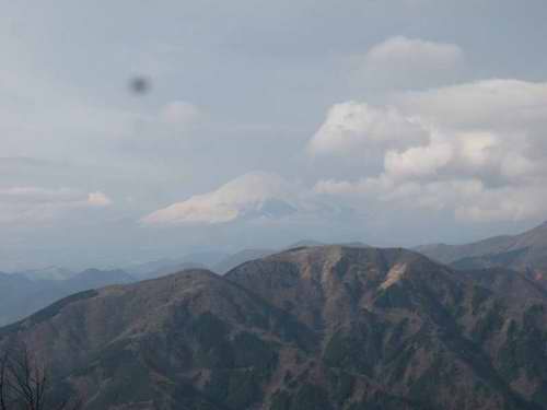 山頂からの富士山頂には最初は大きな雲がかかっていた。