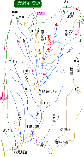 当然ながら石尊沢には大きな滝はない。