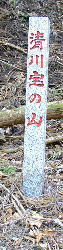 左岸側は落葉樹帯、右岸側は杉の植林帯でその中の小広いところに昭和63年建立の「清川宝の山」と鮮やかに記入された石柱が立つ。