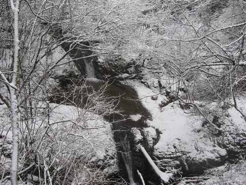 自宅6:40〜上千頭橋7:10バス乗車〜煤ヶ谷7:30〜登山道〜物見峠8:15〜物見隧道8:20〜丸淵見学8:35_45〜小唐沢橋8:55〜尾根に入る〜P602m9:20〜18号鉄塔9:25_30〜クラドウの沢9:45〜戻ってクラドウの沢左岸尾根に9:50〜北尾根に合流(h790m付近)10:00〜16号鉄塔10:15〜北尾根1040mのピーク(ミズヒの頭)10:30_35〜北北東尾根下降〜山神様に到着11:10_15〜千頭観音11:40〜小唐沢橋11:45〜物見隧道12:10〜唐沢林道〜h370m付近から仕事道へ(幅1.5m整備中でとても良い道です)12:30〜犬舎裏へ12:40〜泥道〜唐沢林道入口ゲート12:45〜坂尻BS13:10〜BS下車13:30〜自宅13:50 2010/02/13 下では雨に雪だが、山では雪 今回の降雪量は物見峠3cm 唐沢林道2〜5cm 山神様3cm