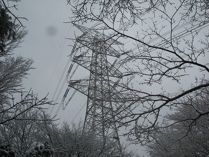 その静寂を破って谷間に響く音は氷の重さに絶えかねて折れて落ちる大木の枝の悲鳴か。<18号鉄塔>