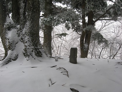 マークの存在には全く気がつかなかったが、周囲は杉・檜・茅などの植林帯であり、人が歩いてつけた踏み跡道があり、藪に煩わしい思いをする事はなかった。