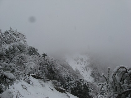 おかげで足は寒くないけど、浅い溝のソールは凍結した登山道ではスリップの役に立ちそうもなく、その分だけ慎重に歩く事を強いられる。