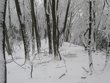 木立の中で見通しは利かず、雪を馬酔木の葉っぱが受けて、それが歩くにつれてバラバラと体にかかる。