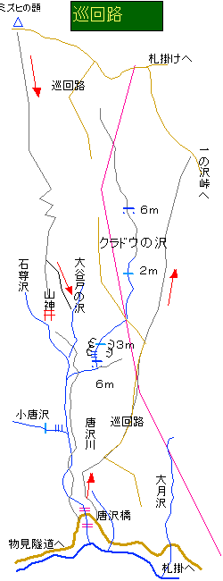 物見峠から隧道に下りて唐沢林道を歩く。