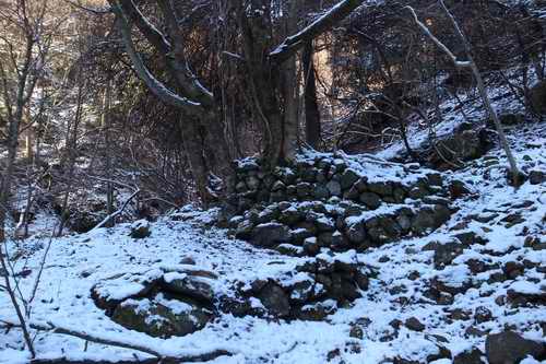 この堰堤横から沢に降るまでが急場だが、沢の流れなく、涸棚が一つあるだけなので、わざわざここを歩こうという気にはあんまりならないが、娘が幼児だった頃には日向薬師界隈を歩いたついでにここらにはちょくちょく立ち寄ったものだ。
