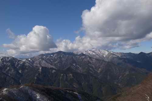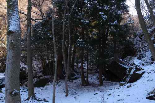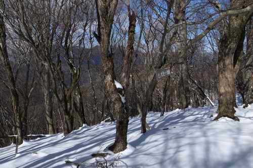 不動尻には雪はないが、その上の小尾根の日の当たらないところには残っている。
