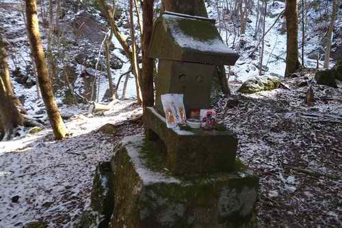 自宅6:40〜千頭橋7:07バス〜上煤ヶ谷7:40頃〜唐沢林道(近回りで)〜物見隧道(8:30)〜小唐沢橋(8:55)〜小唐沢〜山神様9:20_35安全祈願〜杉の沢出会い先(ナメ部通過後)左岸の斜面を上がる10:00〜山神からミズヒの頭への尾根道に合流10:25〜ミズヒの頭10:50〜大山11:40_50〜唐沢峠側に下る〜梅の木尾根からの尾根に入る12:10〜大沢分岐(鐘ヶ岳方向へ進み東屋の先で右手の弁天の森キャンプ場奥への道[廃道]に入る)〜弁天の森キャンプ場13:05〜弁天岩(なめり岩)13:30〜バス時間調整のため愛名入口まで歩く14:33バス〜本厚木駅前15:10〜自宅15:35 晴れ2011/01/16