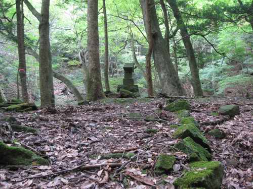 山神様 前方には参道の路肩が組んであるのがうかがえる。