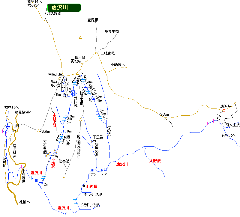 さて、本日はこの唐沢川を先で石尊沢に代わる地点まで溯る。
