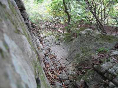 それに従い巻いて登ったあたりから見ると大きな一枚岩が左手に見えたはずである。