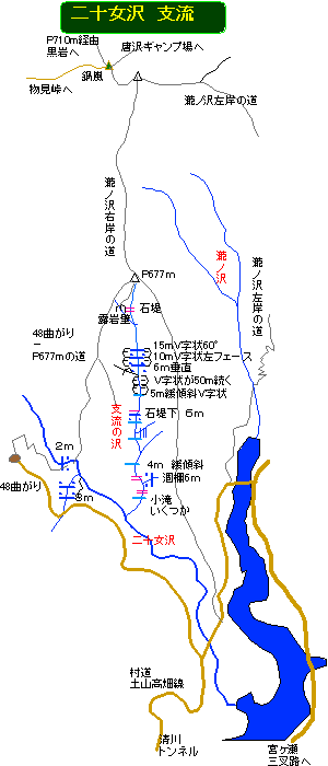 丹沢の沢歩き 宮ヶ瀬中津川支流 二十女沢(ハタチガさわ)の支流 P755mへの小沢U マシラ