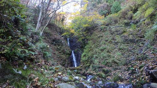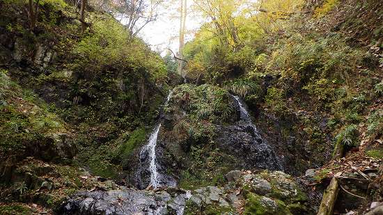 三段の滝は滝の上にかかる木々が黄葉して綺麗だ。