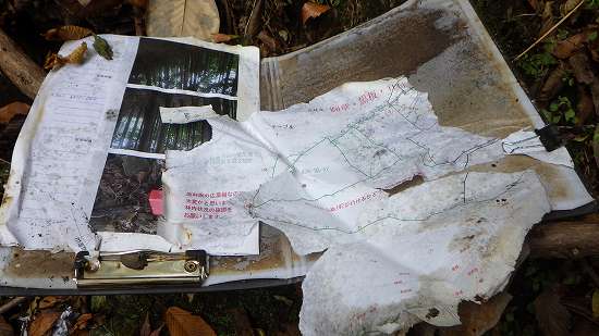 草付きの中に、正住寺山林地勢確認巡回帳が落ちていた。