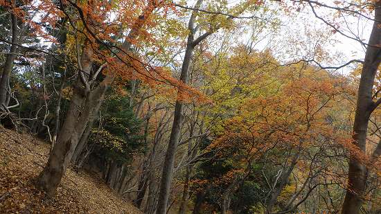この尾根の上半はほとんどが落葉樹林だし、中域も植林帯は少なくミックスの植栽だ。