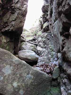 それらの岩を踏んで喉笛のような沢を奥に詰めていくとCSが見える。