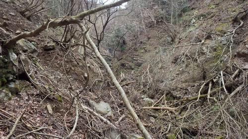 因って倒れた木々は落ちてきたままの状態で沢を覆っている。